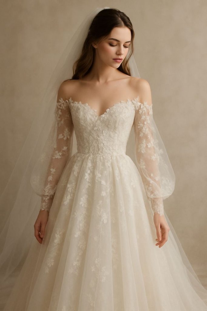Our wedding collection blends contemporary craftsmanship with classic bridal luxury. Discover gowns that move like poetry, highlight your natural glow, and transform your vision into reality. Every detail is designed to honor your story, your moment, and your forever